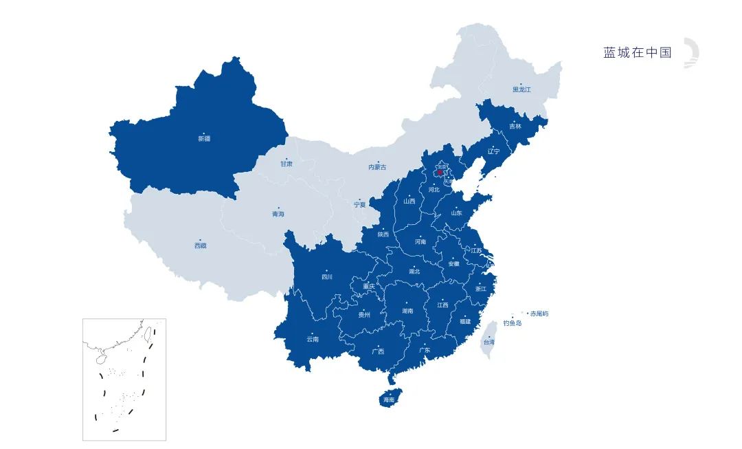 截至2021年12月31日,蓝城已进驻中国24个省及直辖市和124个地级市,落地504个优质项目。